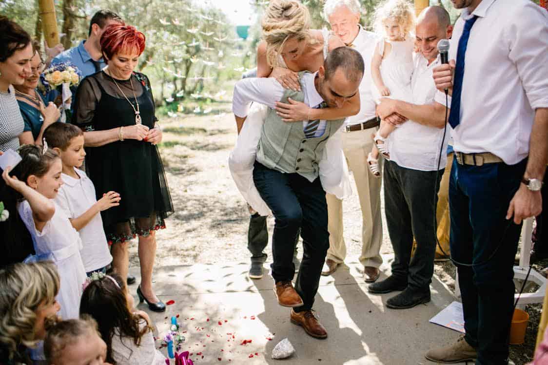 "בחרנו בתמונה מיום חתונתם של פלג ועידית. החתונה התקיימה במטע זיתים קסום ביום שישי באזור הרי ירושלים.