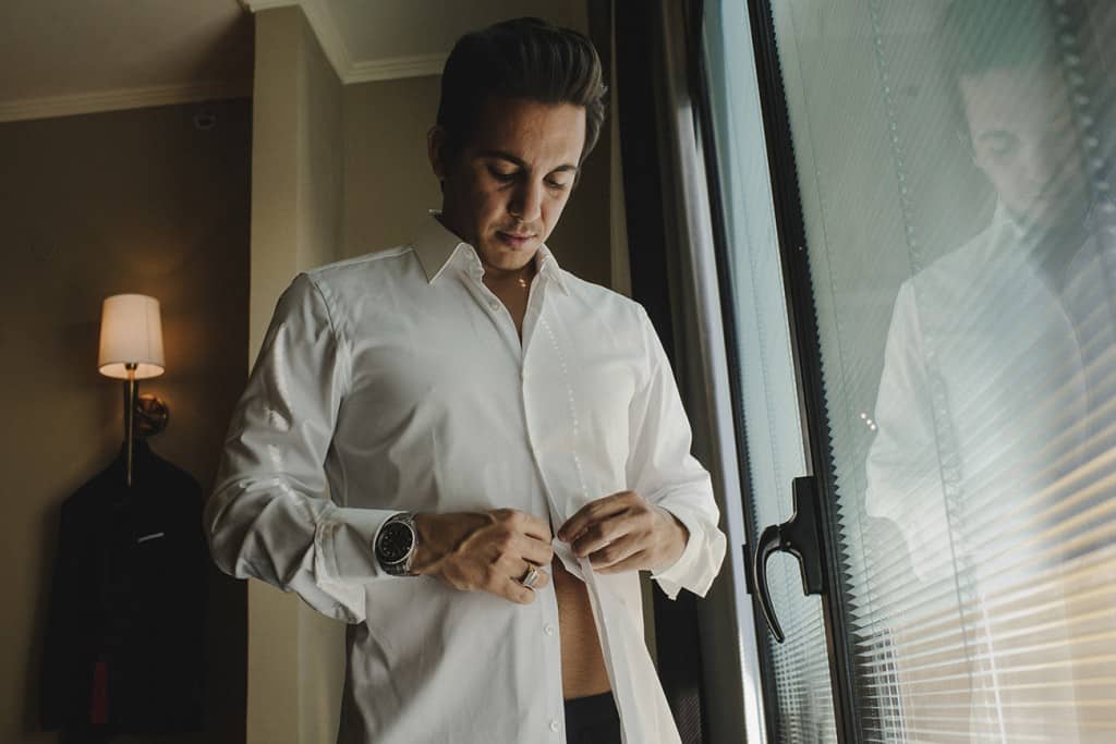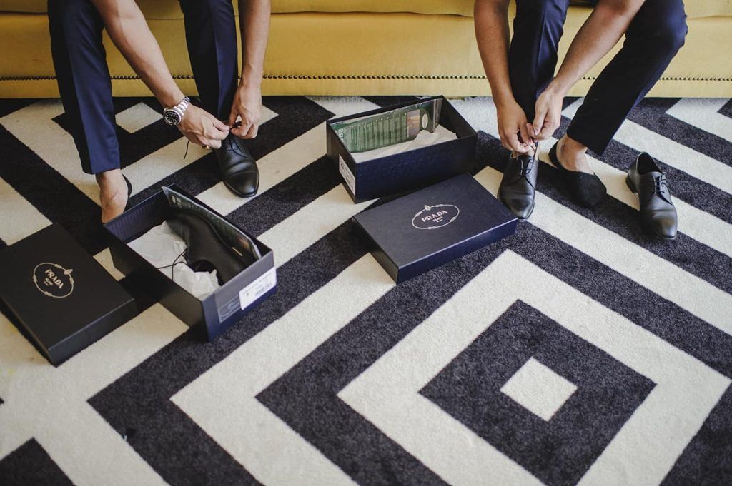 קנינו את הבגדים שלנו שלושה ימים לפני האירוע. לבשנו שתי חליפות זהות מהוגו בוס בצבע כחול נייבי קלאסי שנקנו בארץ.