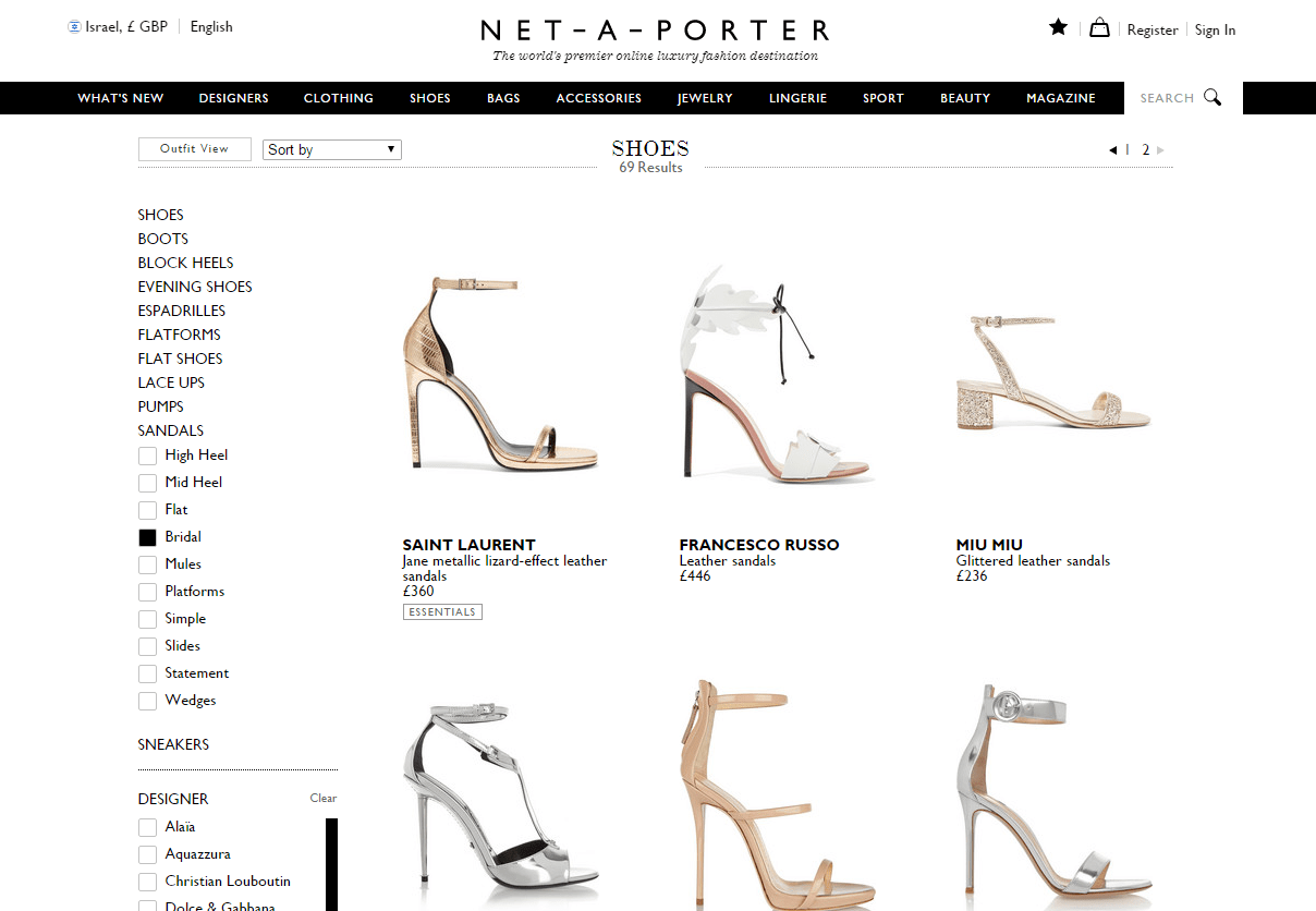 יתרון: כאן תוכלו למצוא כל פריט מעצבים נחשק שכובש בימים אלו את השטיחים האדומים ובין היתר את כל נעלי המעצבים בהן אתן חושקות. שירות המשלוחים שלהם לא פחות מנפלא, ואתן יכולות לסמוך עליהם שיביאו בזמן את הממתק היוקרתי שלכן הביתה בשלום.