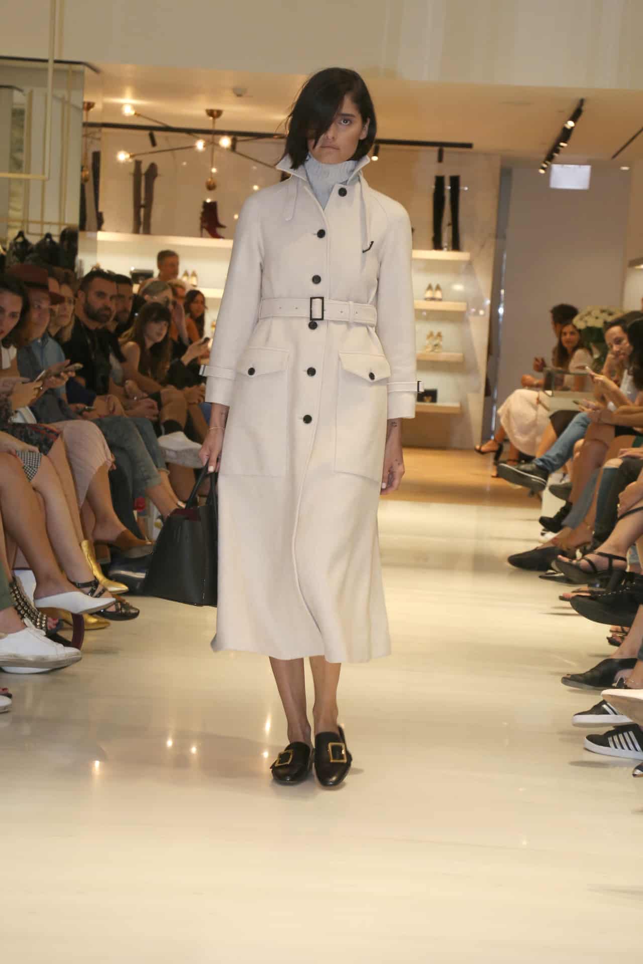 את יריית הפתיחה של התצוגה סיפקה במלוא הדרה הטופ מודל והאמא הטרייה בר רפאלי, שצעדה על מסלול שיש בהיר במעיל מחויט ארוך של ג'וזף, מגפיים שחורים של ג'ימי צ'ו ומבט מנצח שאומר "I'm Back On Track" וילדתי לפני חמישה שבועות, אבל מי סופר? פייר, גם אנחנו החסרנו פעימה.