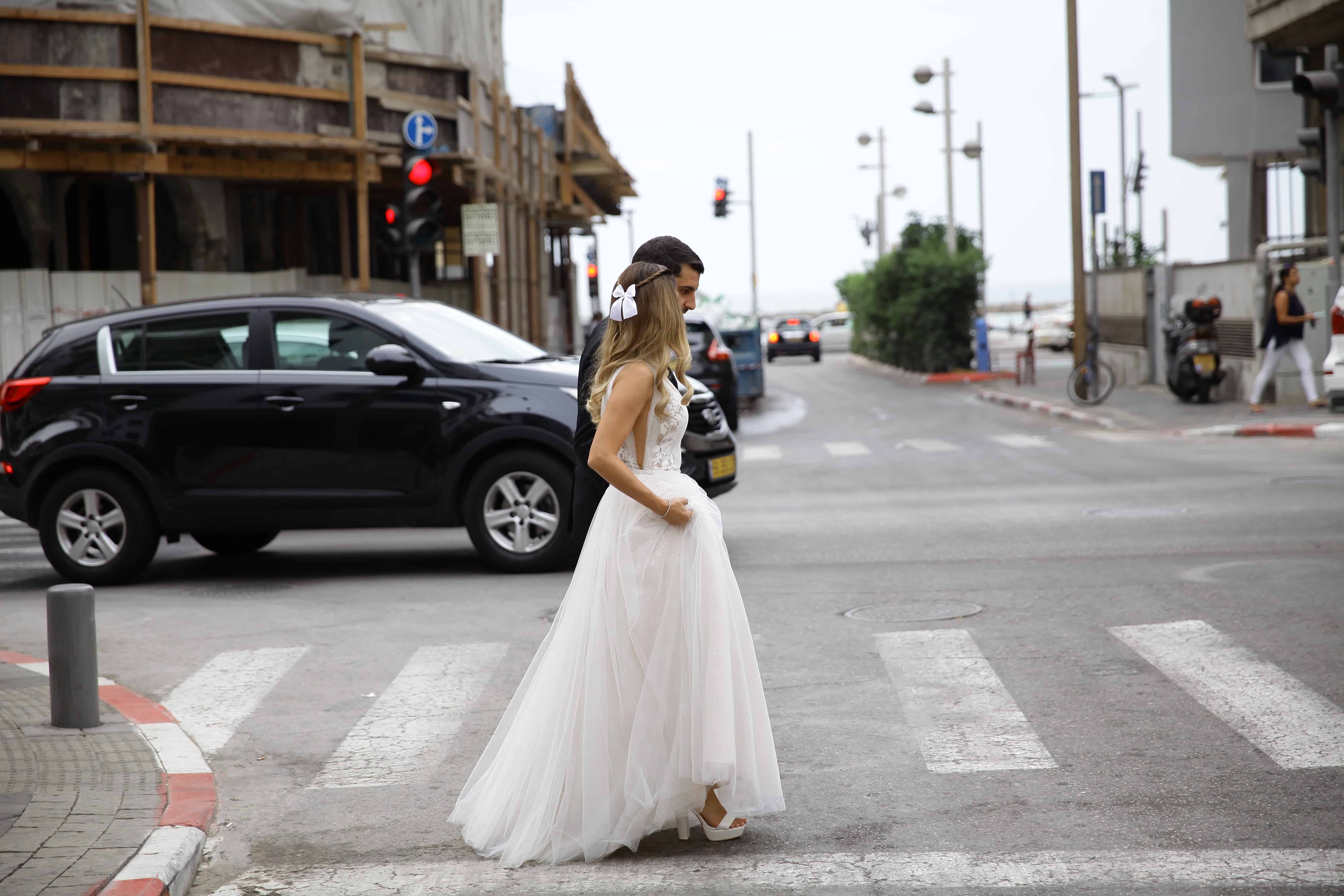 העולם שאני באה ממנו מתעסק בדיוק, אסתטיקה ורמות גימור גבוהות ולכן היה לי מאוד חשוב שבראש ובראשונה אמצא מקום ששם דגש על איכות התפירה. הגעתי לסטודיו 'עמנואל' וידעתי שאם הן ידעו לקרוא את מבנה הגוף שלי ולא לגרום לי למדוד מיליון שמלות שלא יתאימו לי, סימן שאני במקום הנכון. השמלה הראשונה שבחרו לי הייתה שמלת הכלה שאתה צעדי לחופה. זו הייתה שמלת כלה נסיכותית עם מחשוף עמוק שמאריך את מבנה הגוף (לקטנה שכמוני), עם מעט נפח בחלק התחתון. באותה המקצועיות והקלות המעצבת מיכל התאימה לי גם שמלה שנייה, שהורכבה מחצאית שיפון וגופיית תחרה. הרצון שלה ושל הצוות לרצות אותי ברמת הדיוק, התפירה והיחס זה משהו שהיה שם כל הזמן וזה בדיוק מה שחיפשתי.