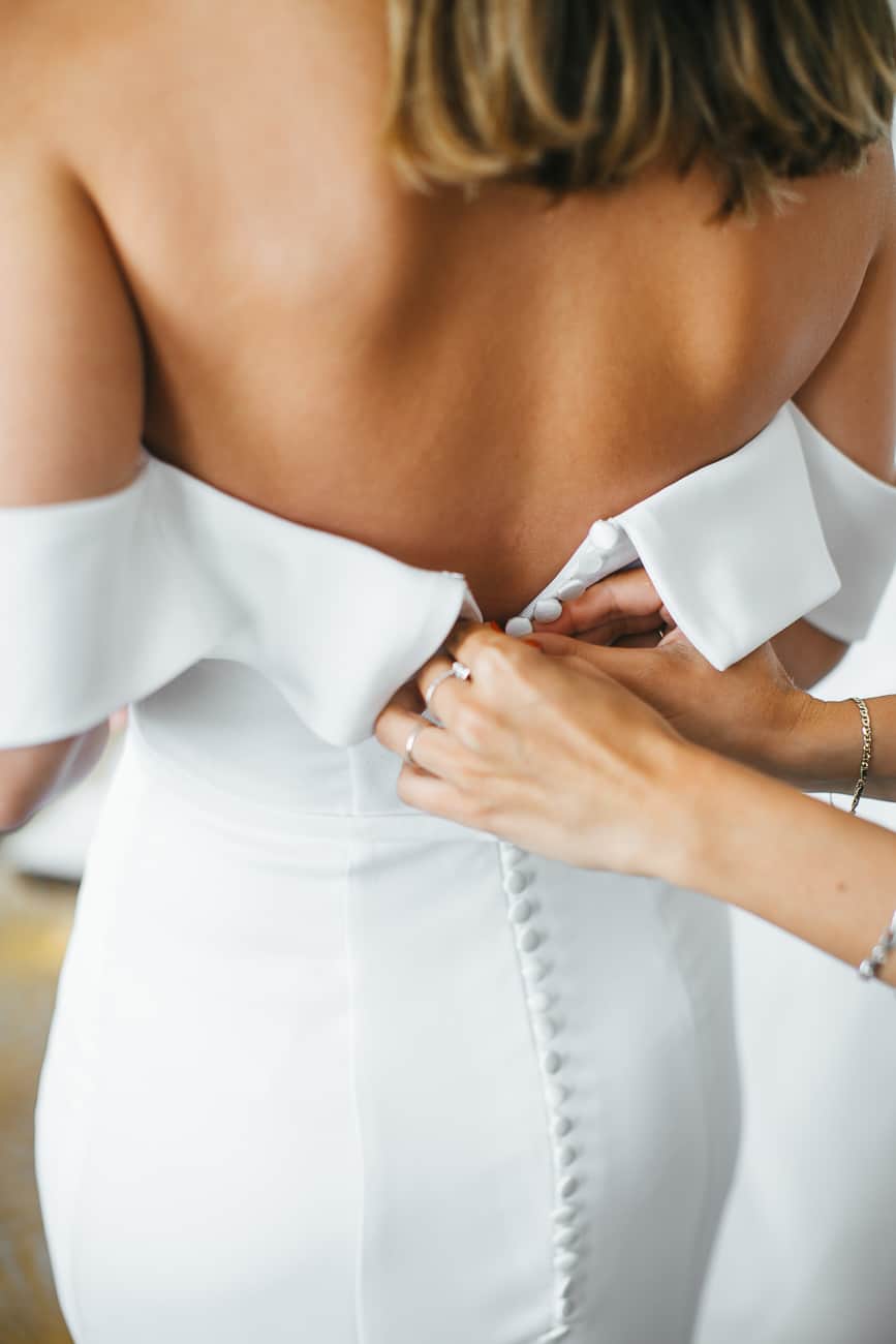 עוד בשלב הראשוני דמיינתי שמלת כלה אלגנטית שתתאים לסגנון שלי, מצאתי בדיוק מה שחיפשתי אצל המעצבת המוכשרת לי גרבנאו, זו הייתה שמלה קלאסית ונשית, במראה נקי וחלק עם טוויסט בכתפיים בגזרת 'Off The Shoulder' עם שובל ארוך.