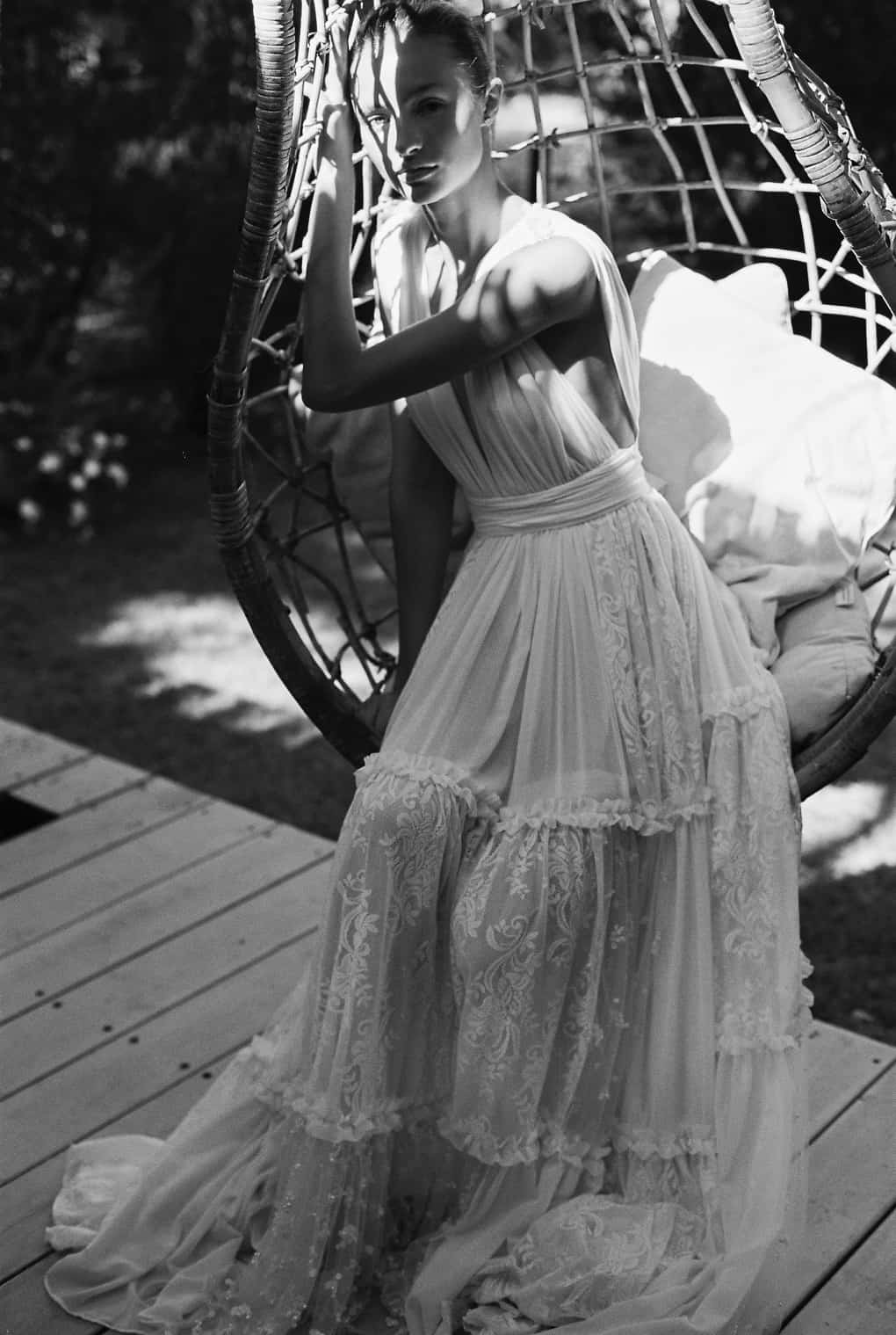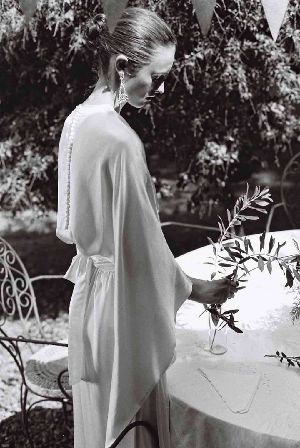 את הקולקציה החדשה בחר לרוס לצלם במושב כנף, הממוקם בדרום הגולן ומשקיף על נופי הכנרת – מיקום שמתיישב היטב עם ההשראה לאוסף שמלות החדש.