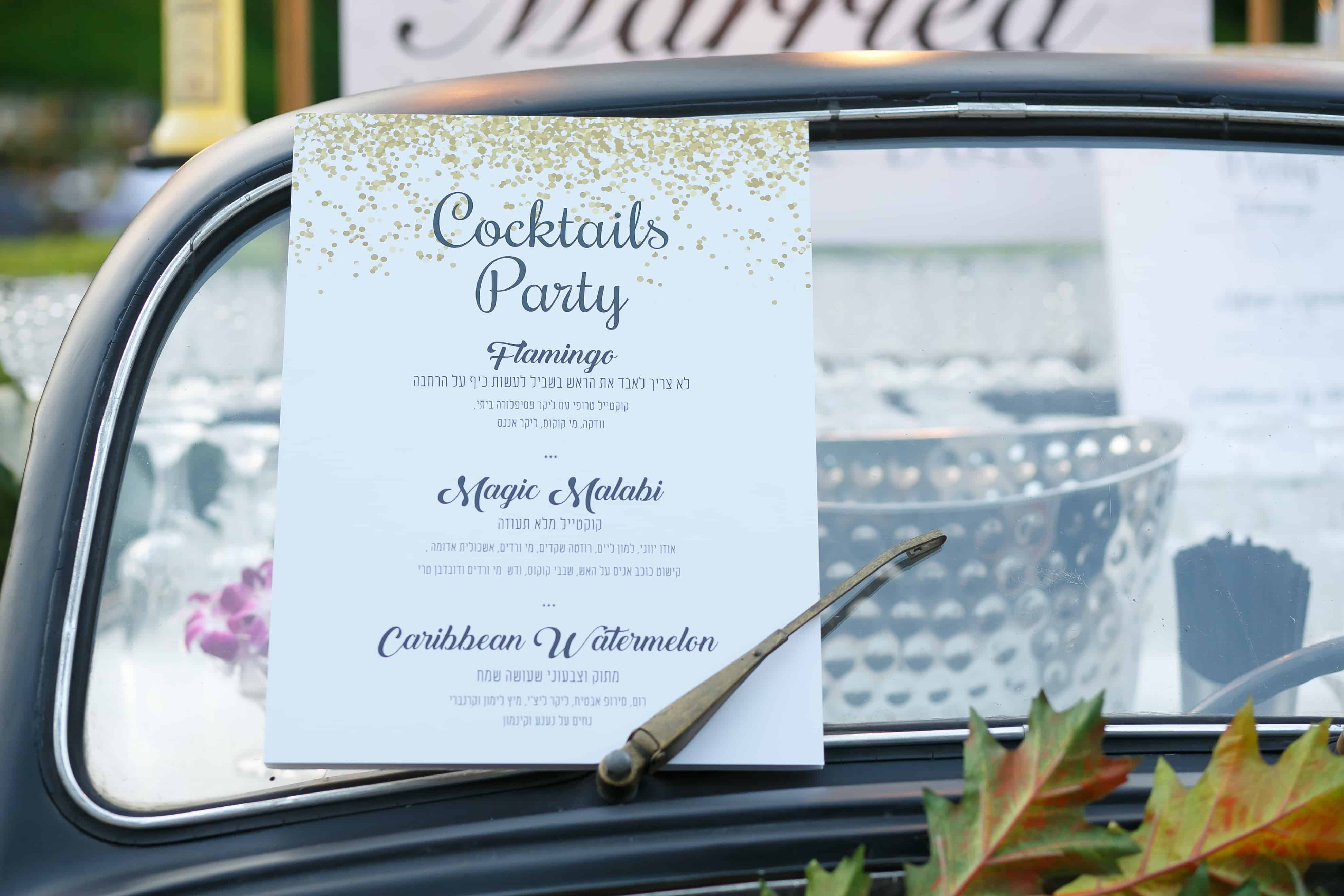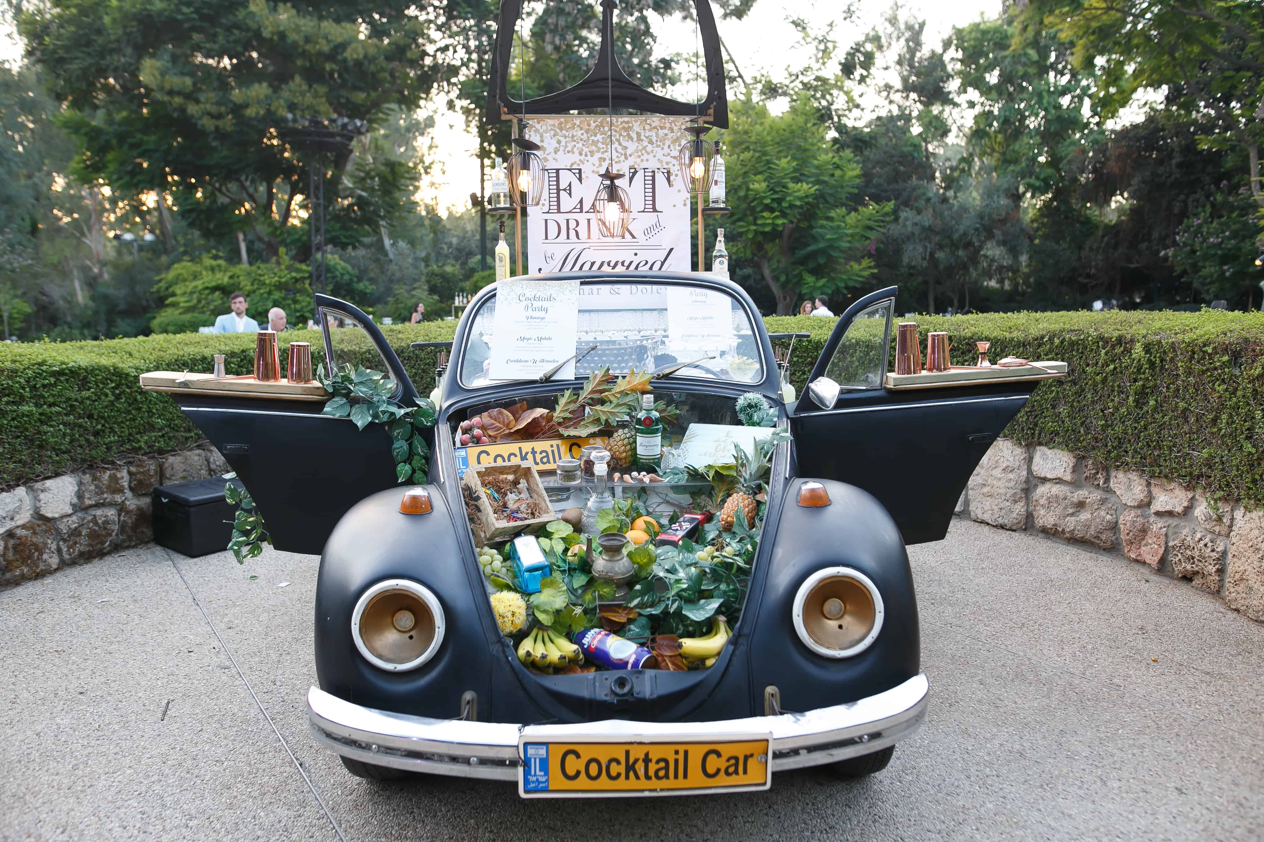 תודה ל"קוקטייל קאר" – העבודה עם ליאור ורונה הייתה באווירה טובה מלווה באלכוהול תמיד (ובכלב חמוד). בחרנו להציב רכב קוקטיילים בצורת חיפושית שיגיש קוקטיילים בקבלת פנים ורכב ואן גוך לשלב המסיבה שהגיש קוקטיילים על בסיס ואן גוך. ההתלהבות מהקוקטיילים, מהמכוניות ומהסקסולוגים הייתה מטורפת ועד היום חברים אומרים לנו שהקוקטיילים בחתונה שלנו היו הכי טעימים.