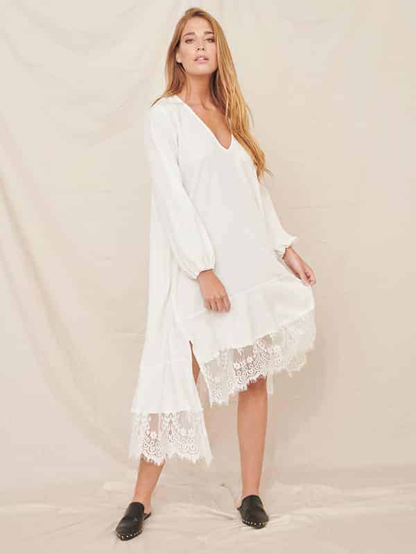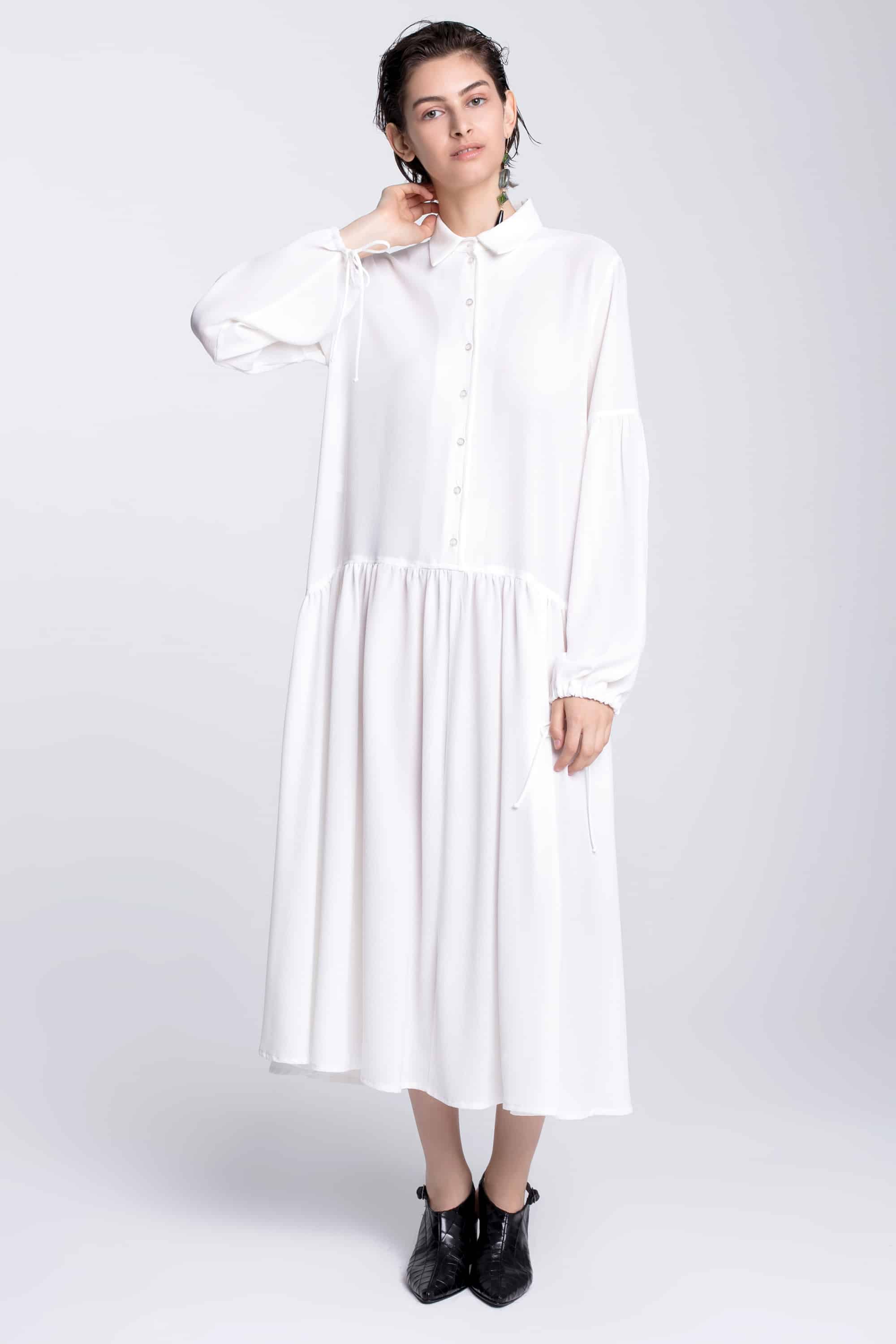 שמלת מידי לבנה בגזרת אוברסייז. להשיג בדורין פרנקפורט.