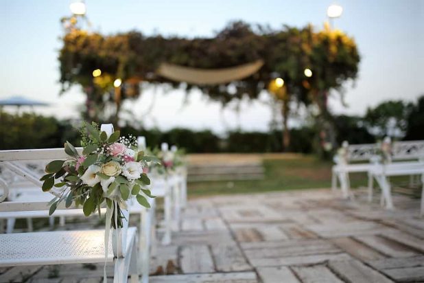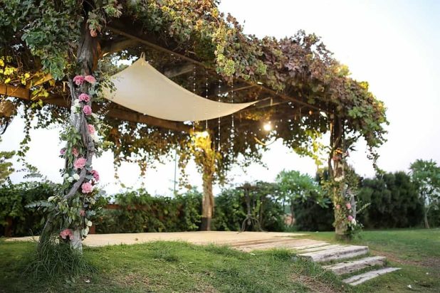 בגלל החופה: החופה נערכת מתחת לפרגולה עמוסה צמחים מטפסים וירוקים, עשויה מגזעי עץ טבעיים וכהים, כאשר דרך הגישה של בני הזוג אליה היא דרך שביל עץ מחוספס ומרגש, סביבו עומדים כל בני המשפחה והחברים, מרוגשים ועטופים אווירה טבעית וממכרת.