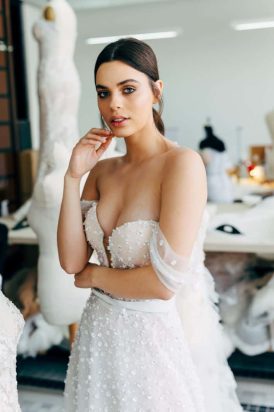 ועוד משהו קטן… היא מצליחה להעניק משמעות חדשה לצבע הלבן. תוך שימוש אינטיליגנטי בגוונים, טקסטורות, רקמות ואפליקציות היא יוצרת שמלות בעלות חותם אישי שיגרום לכן לשכוח את כל מה שידעתן על הצבע האלמותי הזה ותפתח בפניכם עולם לבן, מרהיב ומגוון.