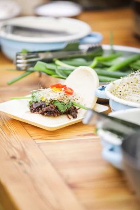 בגלל הקונספט הקולינרי: ביתני האוכל הצבעוניים שפזורים ברחבי הגן הופכים את בית – חלל אירועים אורבני לייחודי ומוסיפים גם הם לאווירה המסקרנת של המקום. כל ביתן מעוצב בהתאמה לסגנון הקולינרי המוגש בו, כך שתוכלו למצוא ביתן בסגנון יווני או סגנון אסיאתי. התפריט כאן ורסטילי ועדכני ומציע אינספור קינוחים מושקעים ומגוונים.