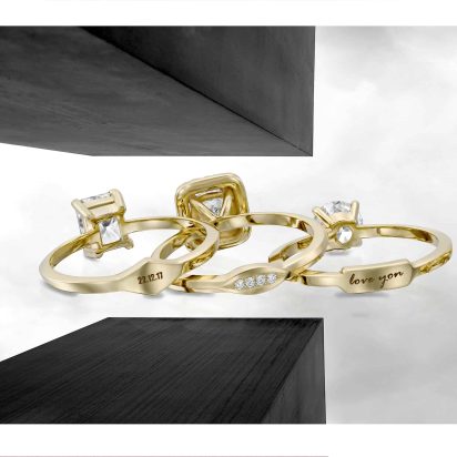 ועוד משהו קטן… כל תכשיט של YAMA, נבחן בראייה ״אדריכלית״ של 360 מעלות, כך שטבעות האירוסין והנישואין שלך יראו מושלם מכל זווית. כן, גם בהסתכלות מלמטה. בעיצוב ייחודי יש איזור קטן להתאמה אישית של הטבעת לזוג המתחתן, באמצעות חריטה או שיבוץ עדין.